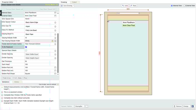 Explore how to draw a direct glazed unit with a bottom rail and/or head rail. A useful feature when drawing a door set with direct glazed sidelights, where top and bottom rails need to align with those of the doors.