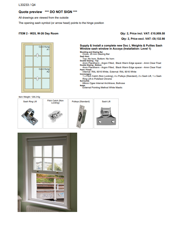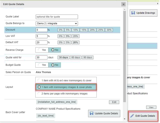 When the quote PDF is produced, the cover image will appear beneath the drawing.