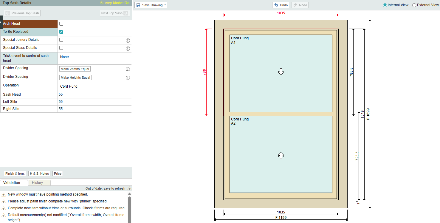 Navigate to settings, then organisation, then DrawingBoard, for frame display settings for sash windows.