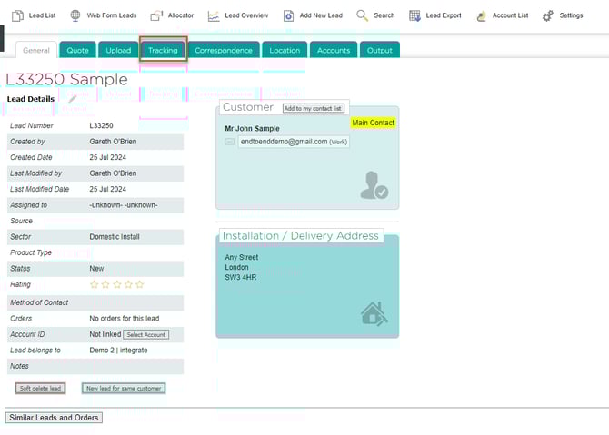 Locate the required lead using the main search function in the top-right corner, or from the lead list.