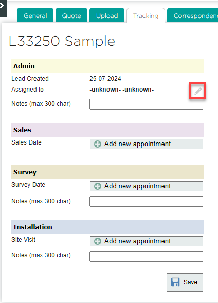 Click save. The system will prompt whether to send an email notification to the selected salesperson.
