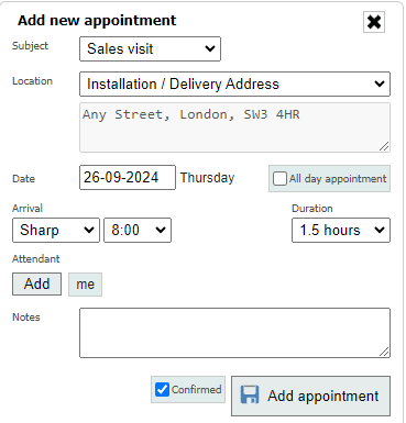 Note: For provisional appointments, untick the confirmed box to mark the appointment as TBC.