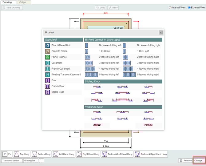 To change a single casement to a pair of French casements or a floating transom casement or mock sash, select casement sash, click change, then choose the relevant option.