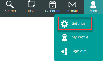 Click the user name in the top-right corner, then settings.