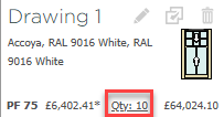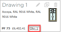 From the quote overview page, create a drawing as normal. Click qty: 1 next to the price to open the drawing quantity menu.