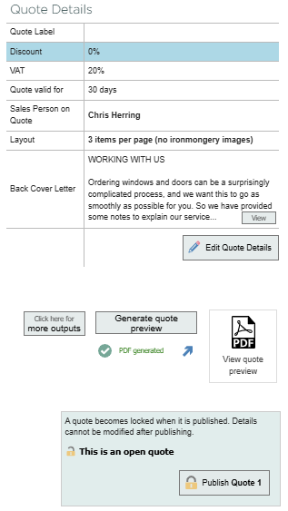 When happy with the presentation of the quote, finalise by publishing. If required, quotes can be copied and republished at a later date.