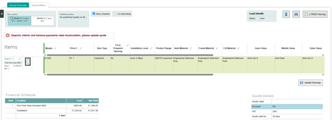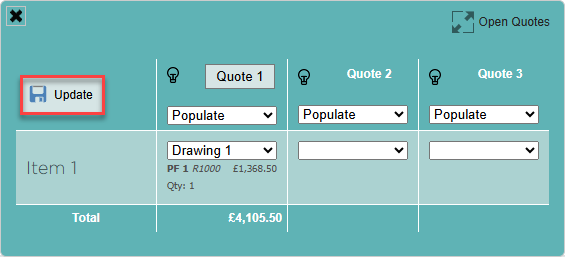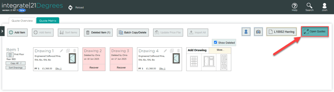 Click switch drawing or return to the quote overview page to work on remaining items. Once all items are ready, from the quote overview page, click open quotes.