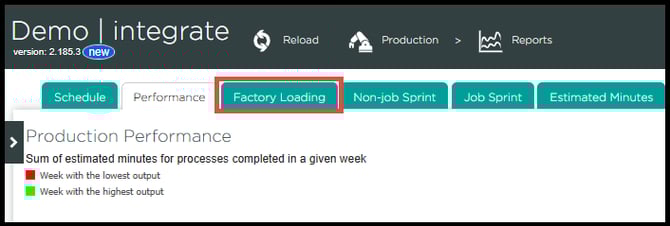a. From the reports page, click the factory loading tab
