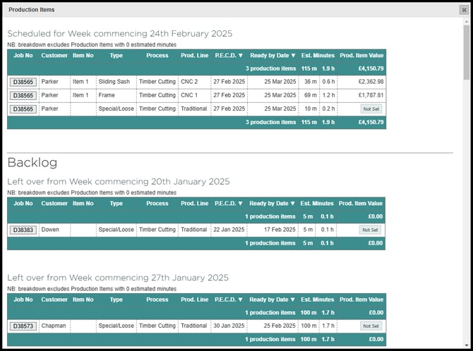 Underneath the scheduled week is a backlog section. This section displays any jobs not completed in the previous week, which are automatically rolled over into the following week's schedule until they are finished.