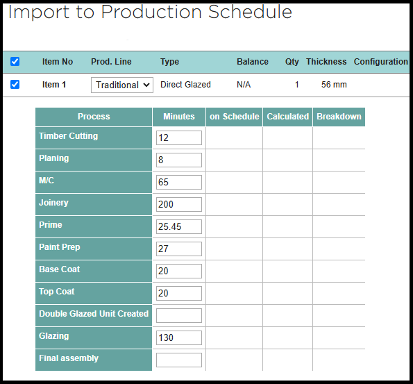 Estimated minutes can be manually modified when a job is imported to the production schedule.