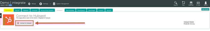 As an external support user, log in to the client's integrate system. Navigate to Settings > System Management > HubSpot.