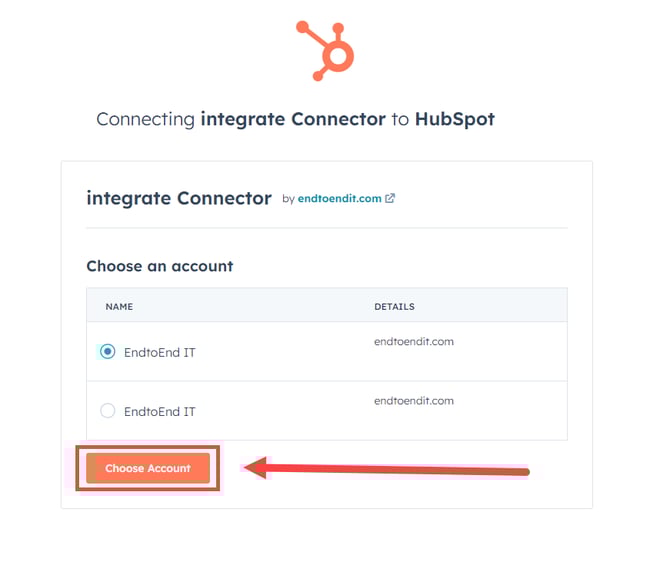 The HubSpot account should now be connected to integrate.