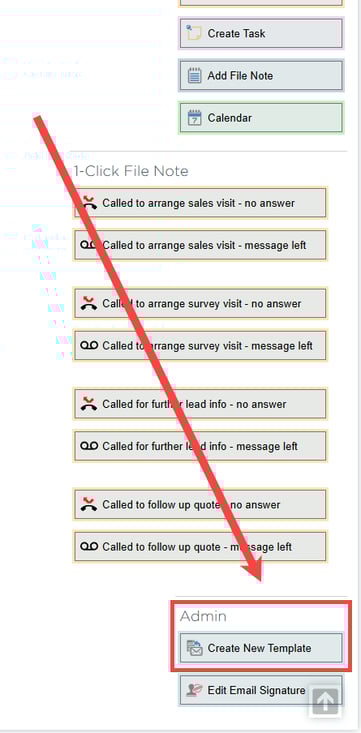 On the lead’s correspondence page, scroll down and click the create new template button.