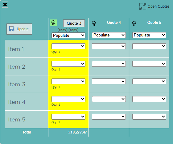 Alternatively, go to the quote overview page and rebuild the quote. In the open quote menu in the top right, remove all drawings from the quote and click update. Add the drawings back in, click update again. Return to the matrix page, click update drawings, regenerate the quote preview.