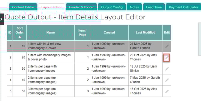 Navigate to quote settings, then layout editor, edit the relevant layout.