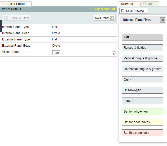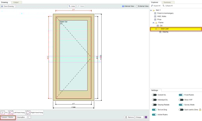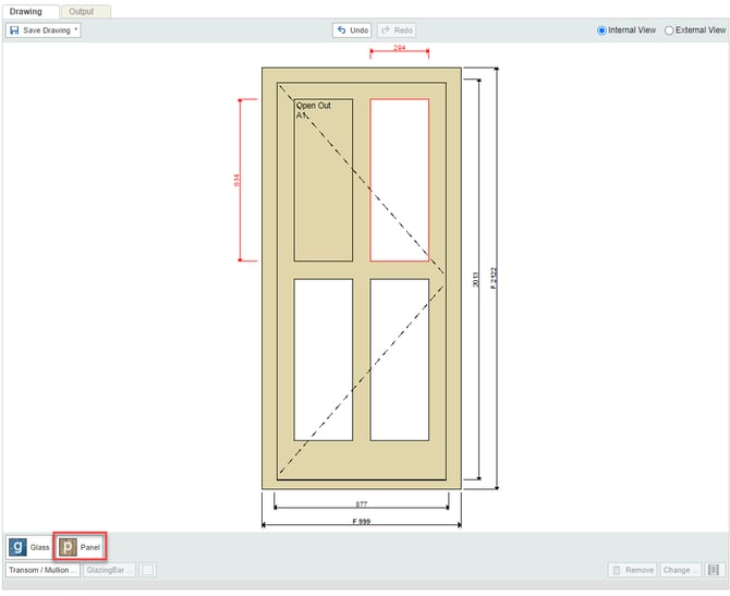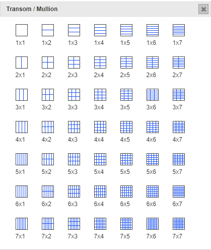 Select the relevant option to divide the door leaf into the required number of panels. For example, select 2 x 2 for a four panel door.