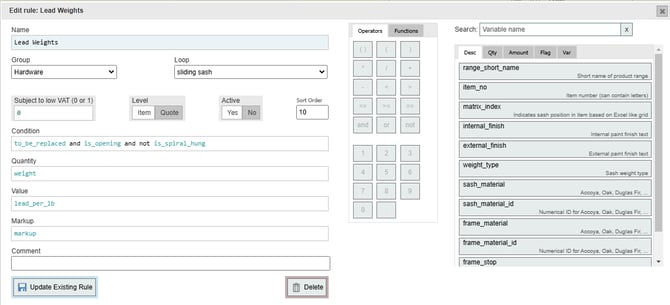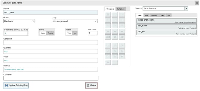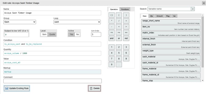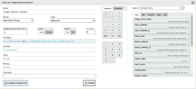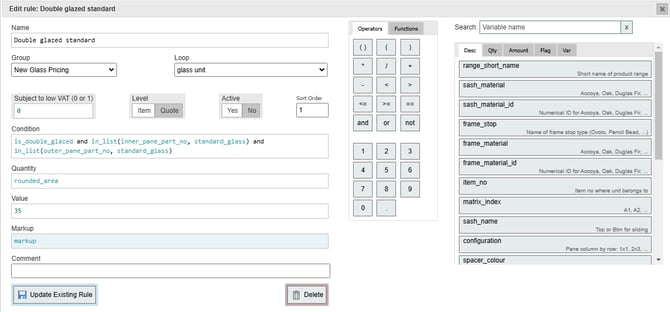 Explore how to write pricing rules for timber, glass and ironmongery.