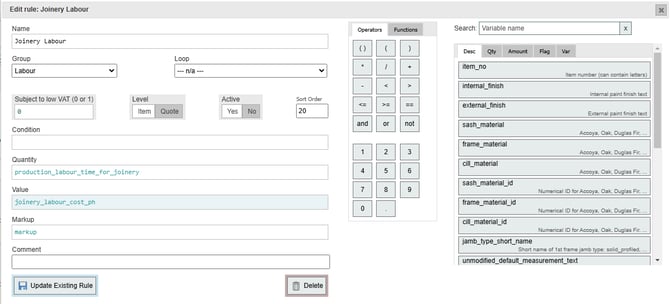 Next, write a rule to multiply the production time for that process (in this example joinery) by the hourly rate that has been set.