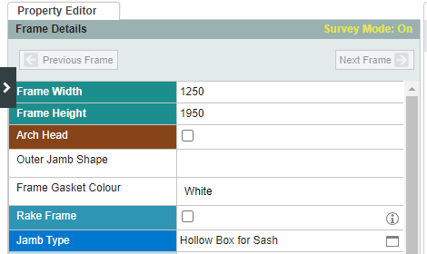 Select the frame and then change the width and height. A pair of sashes can also be selected, and the internal frame width and internal frame height changed.