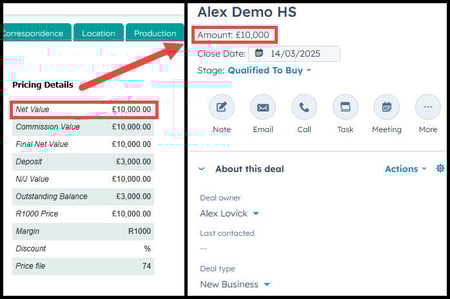 Once a quote is processed as an order, the amount field in the HubSpot deal will automatically reflect the net value of the corresponding order in integrate. This can be configured by EndtoEnd to either include or exclude VAT.
