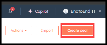 From the main deals page, click create deal in the top-right corner.