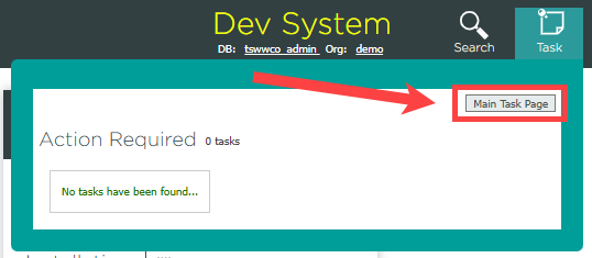 In the dropdown panel, click main task page. This opens the full task list.