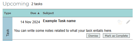 The task will be added to the upcoming or action required columns based on its assigned due date.