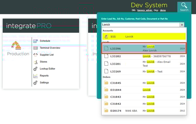 Use the lead list, order list, or the main search bar to locate and open the record.