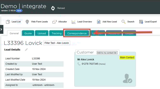 2. Go to the correspondence page
